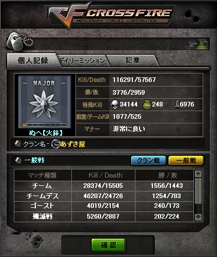 CFだと少佐で結構なランカーです